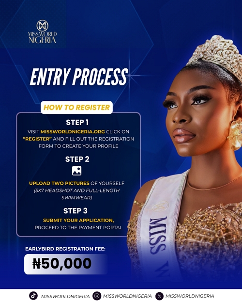Visit 👉 www.missworldnigeria.org and click REGISTER